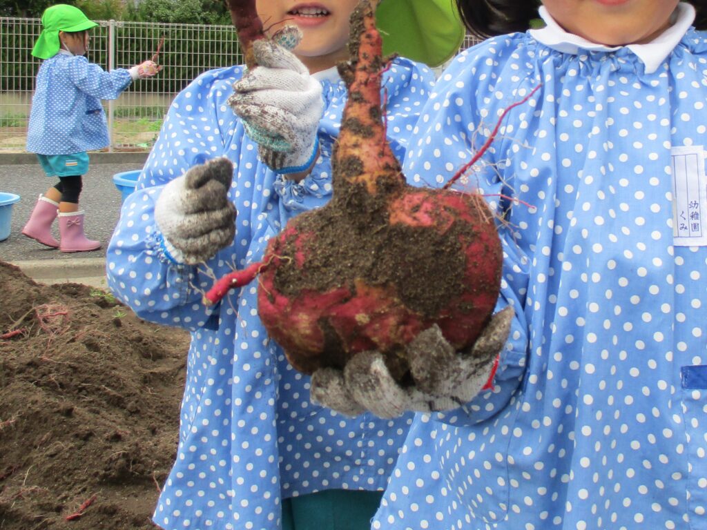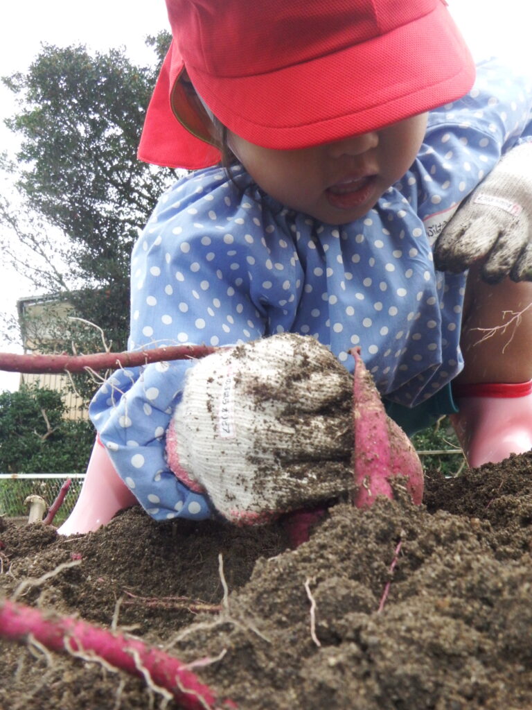 手袋をつけた手で土を掘ると、中からさつまいもが顔を出し子どもたちの歓声がたくさん聞かれました。