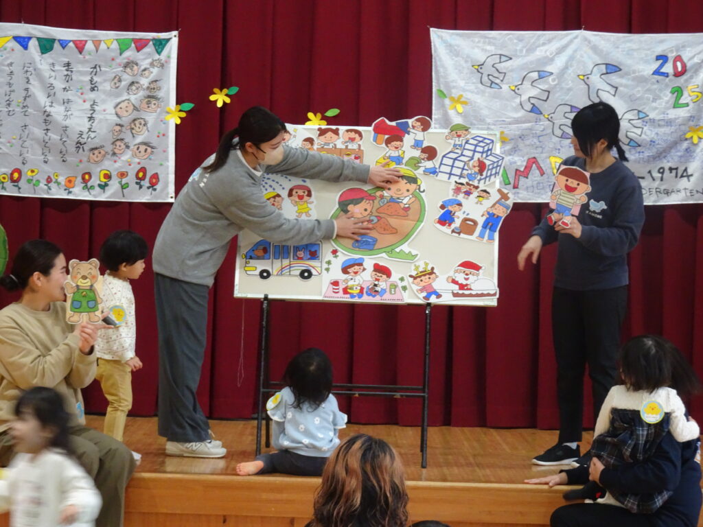 新しい制服や道具を受け取ったり、先生たちによるおたのしみ会を楽しんだりしました。幼稚園の生活の中で、今日のような楽しい時間がたくさんありますので、ぜひお楽しみに☺