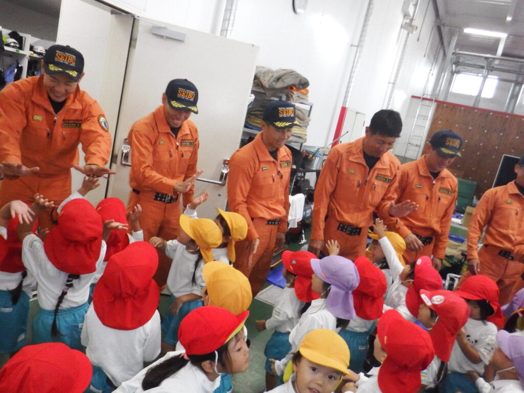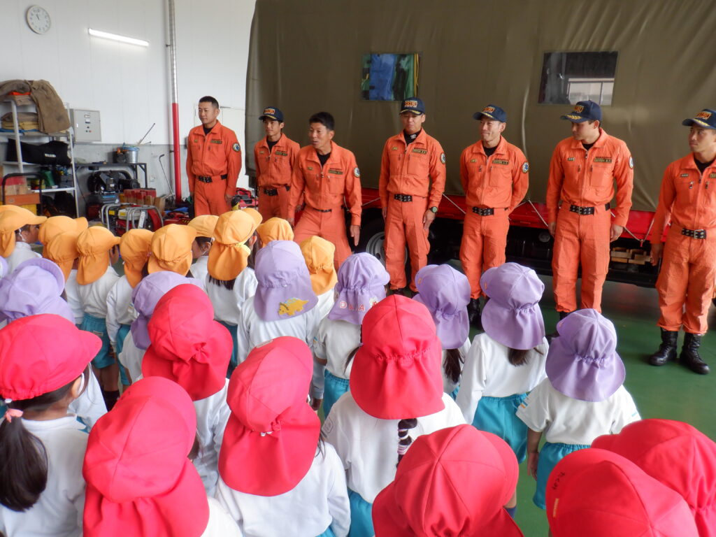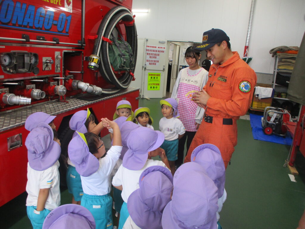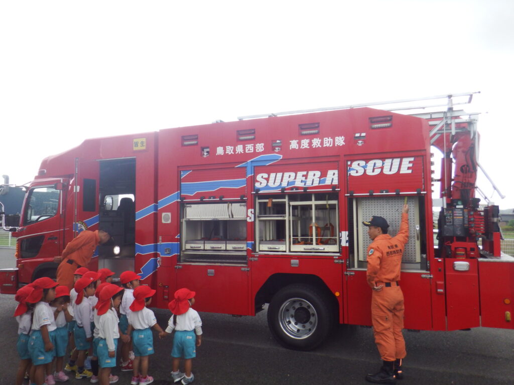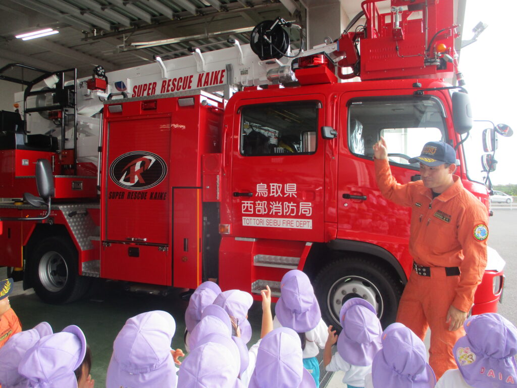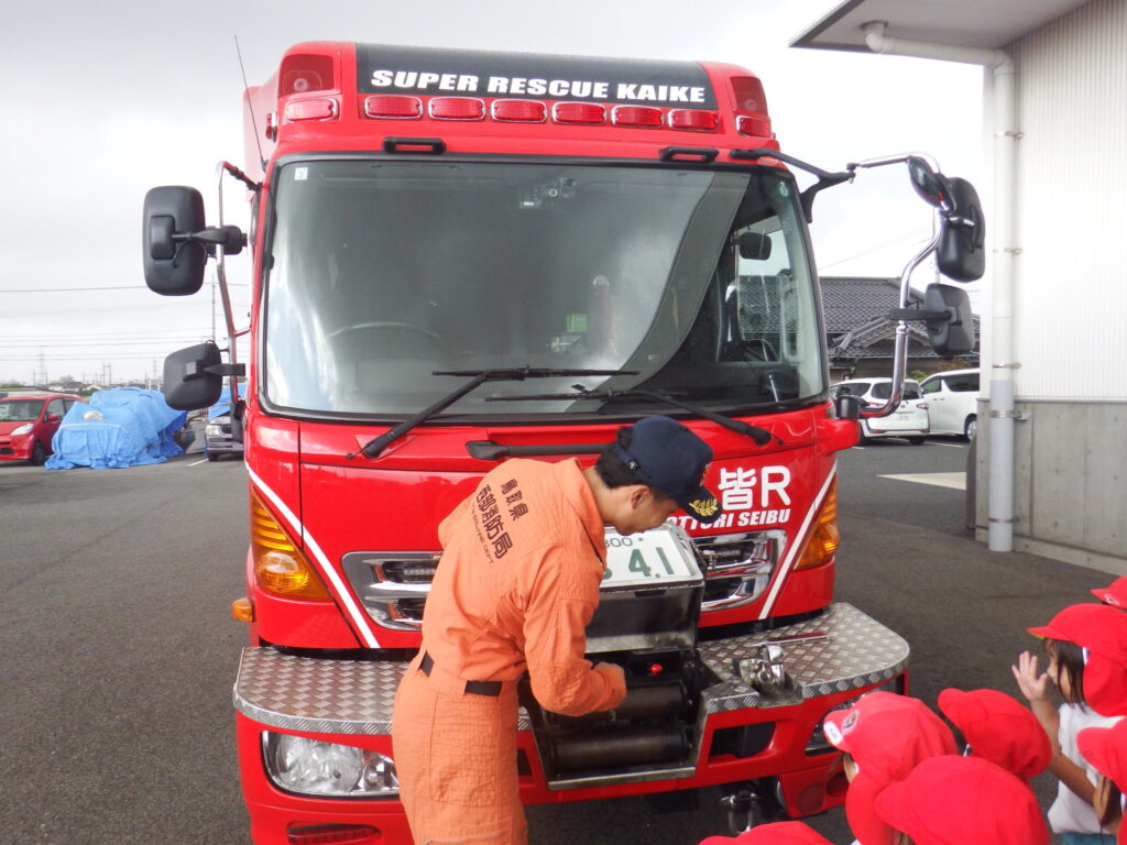 今日年少組は、皆生消防署へ園外保育に行きました。
