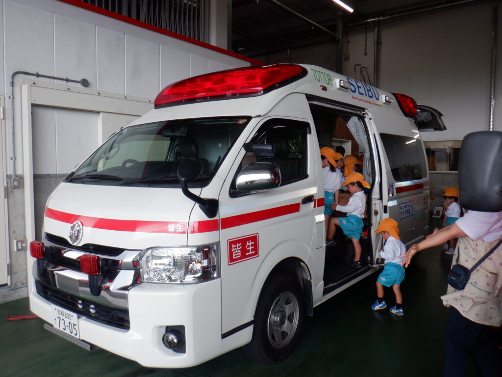 「消防車!」「はしご消防車!」「救急車!」とよく知っていた年少組でした。