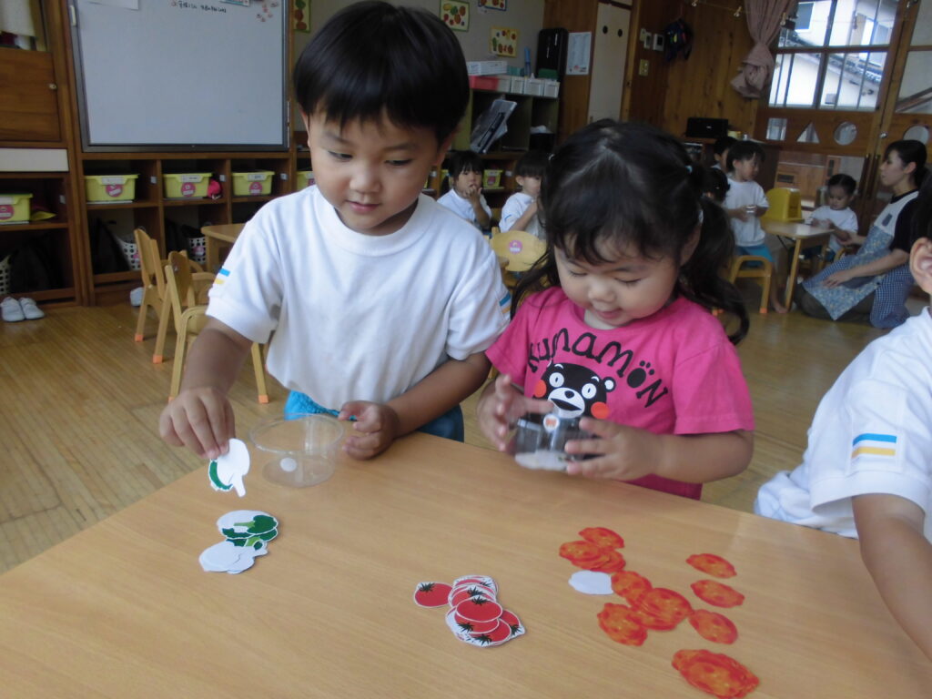 できたものを見せ合ったり、先生に嬉しい気持ちを伝えたり…