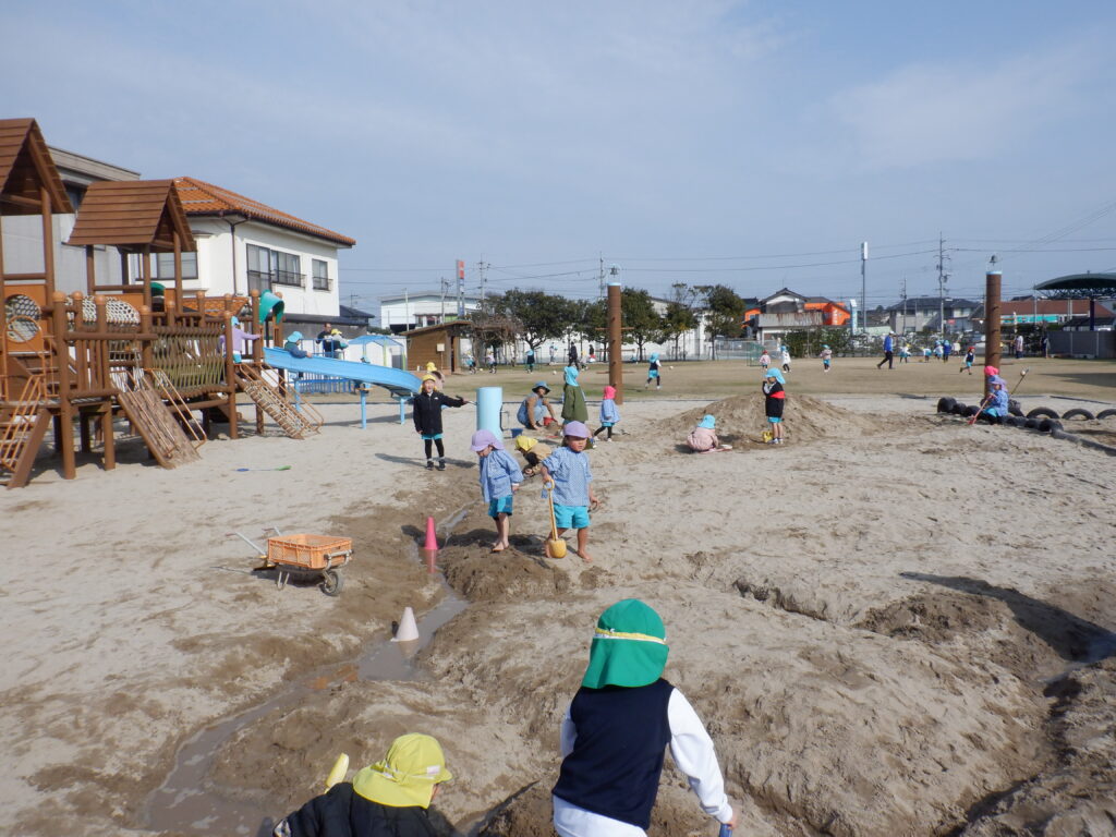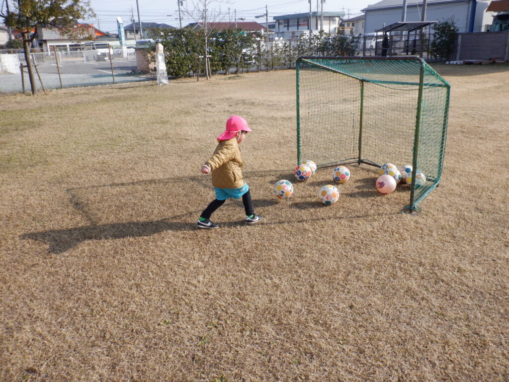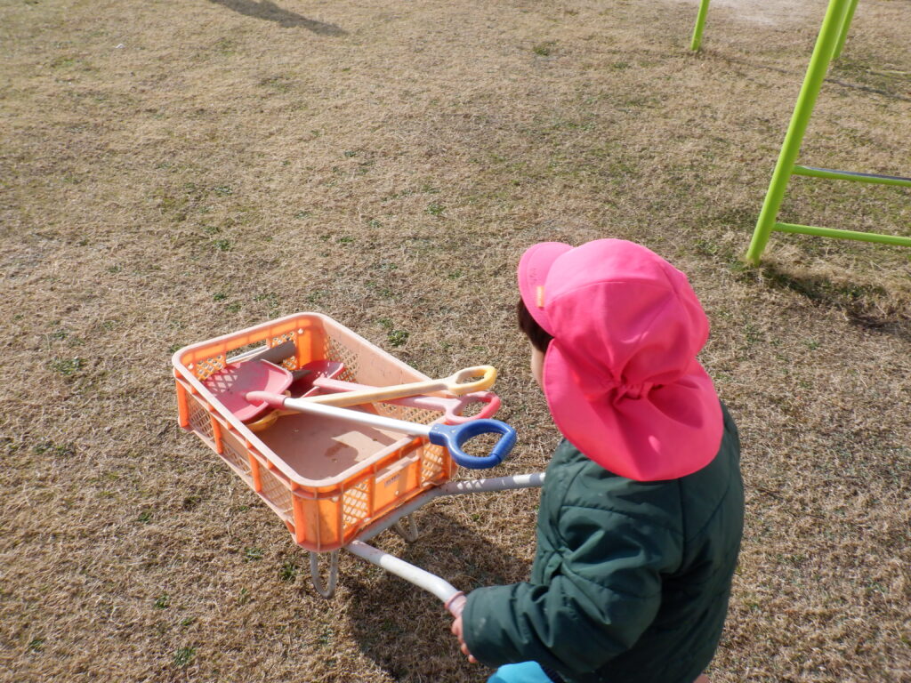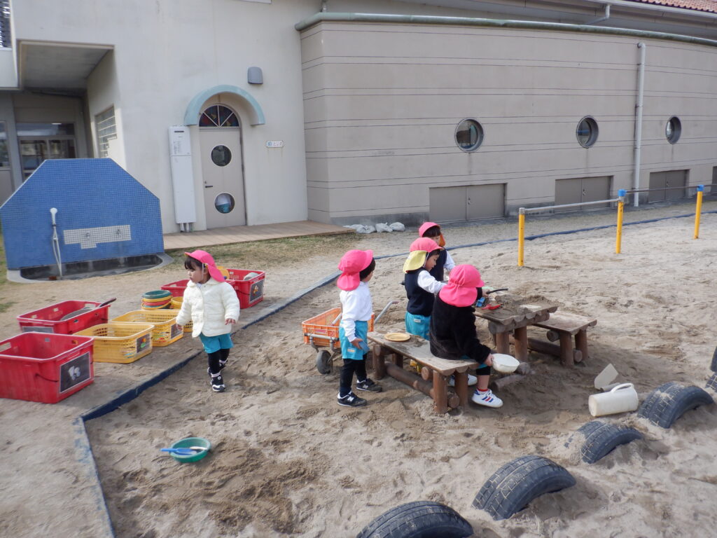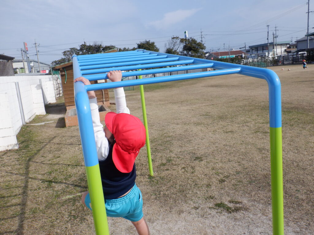 さっそく満3歳クラスが、外遊びを楽しみました。