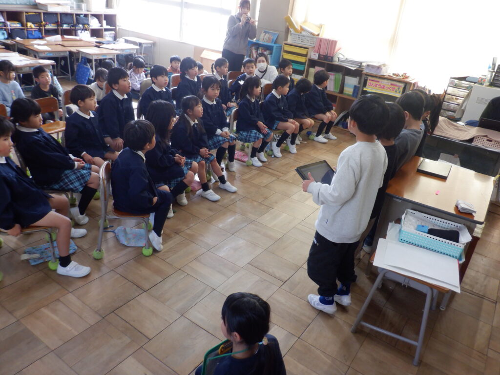 1年生はクロームブックを使って、説明してくれました。