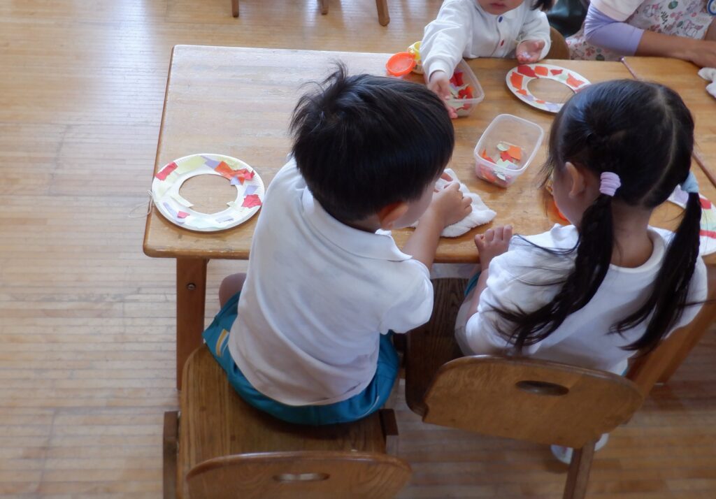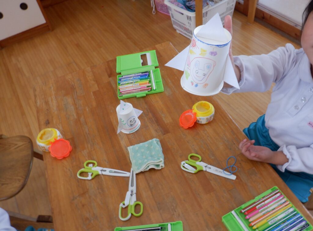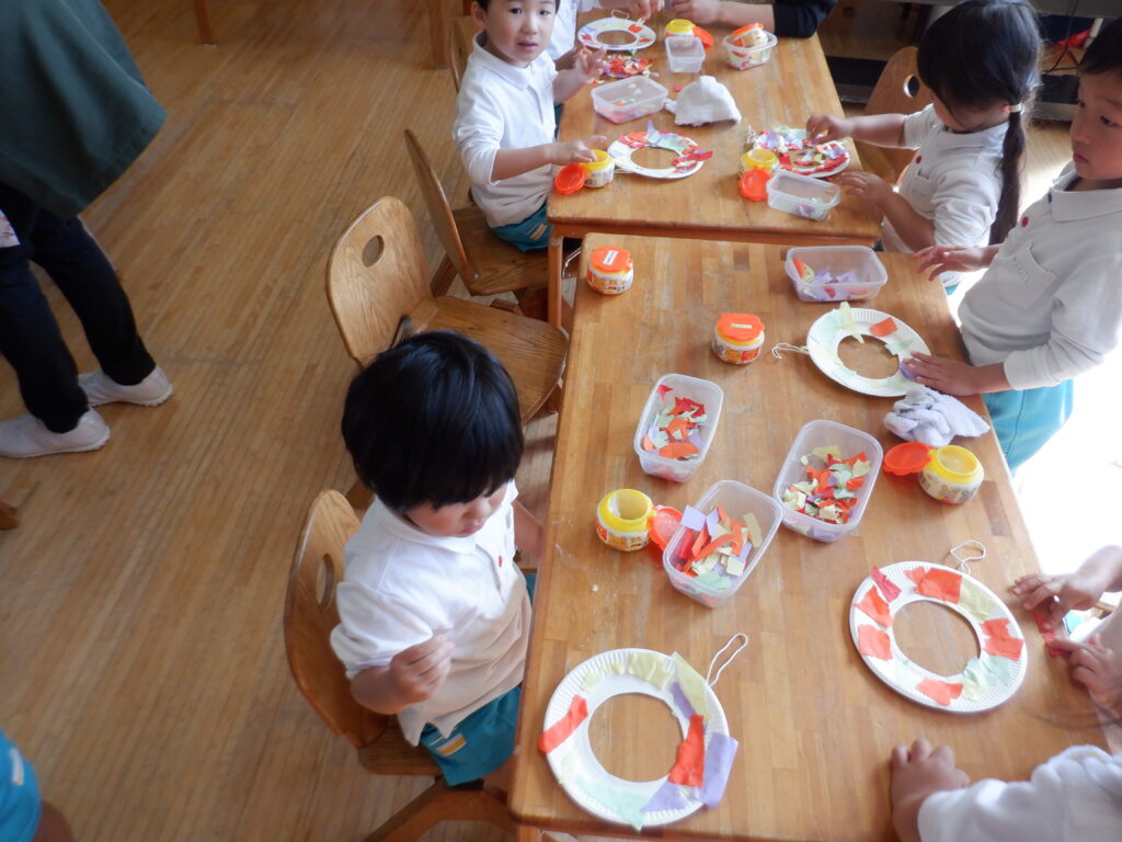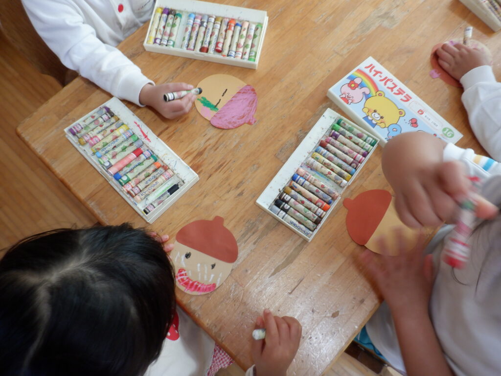 ドングリの顔を書いて、リースに貼ったら完成です。