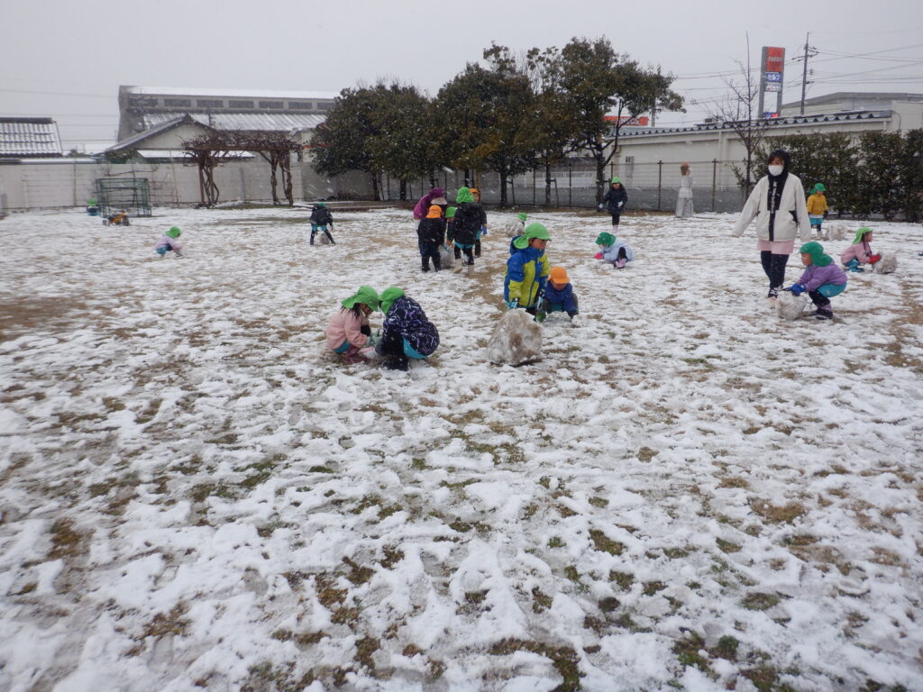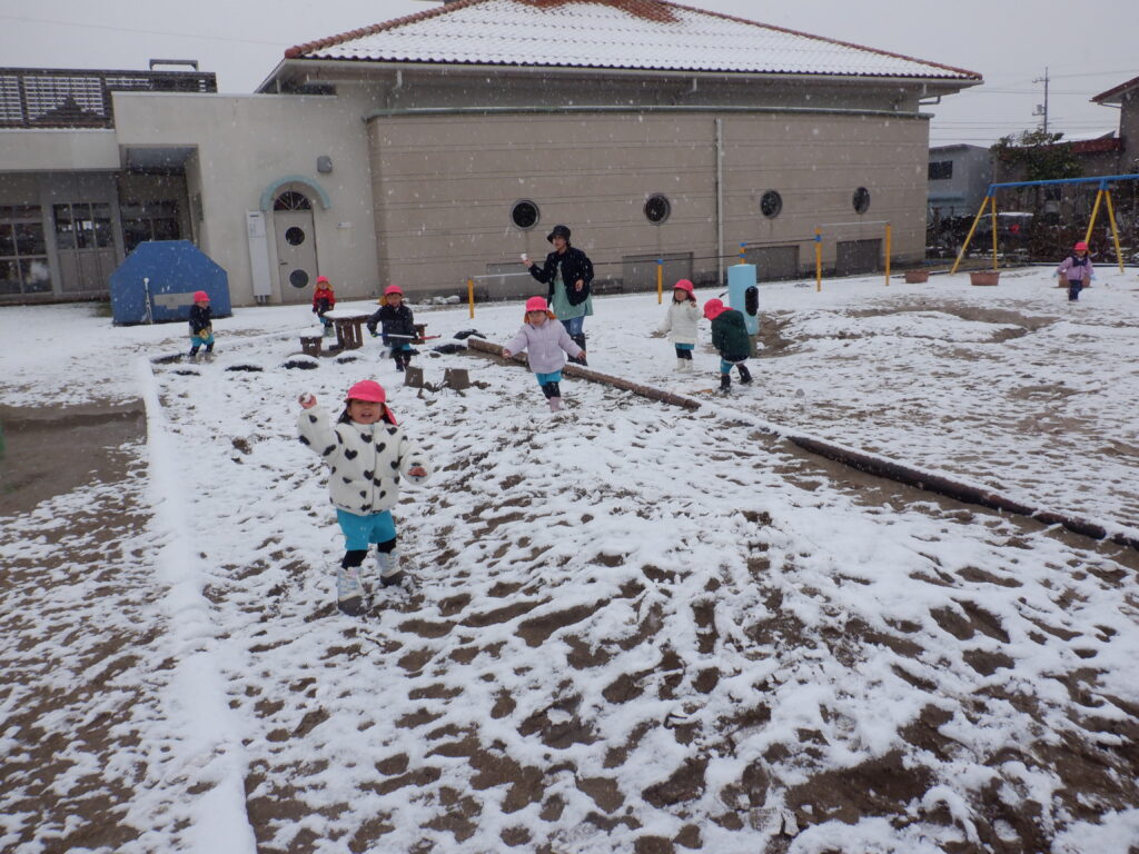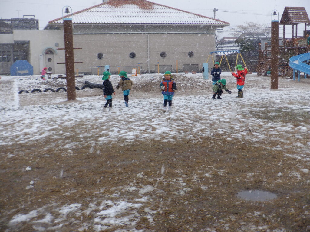 待望の雪が、園庭に積もりました。