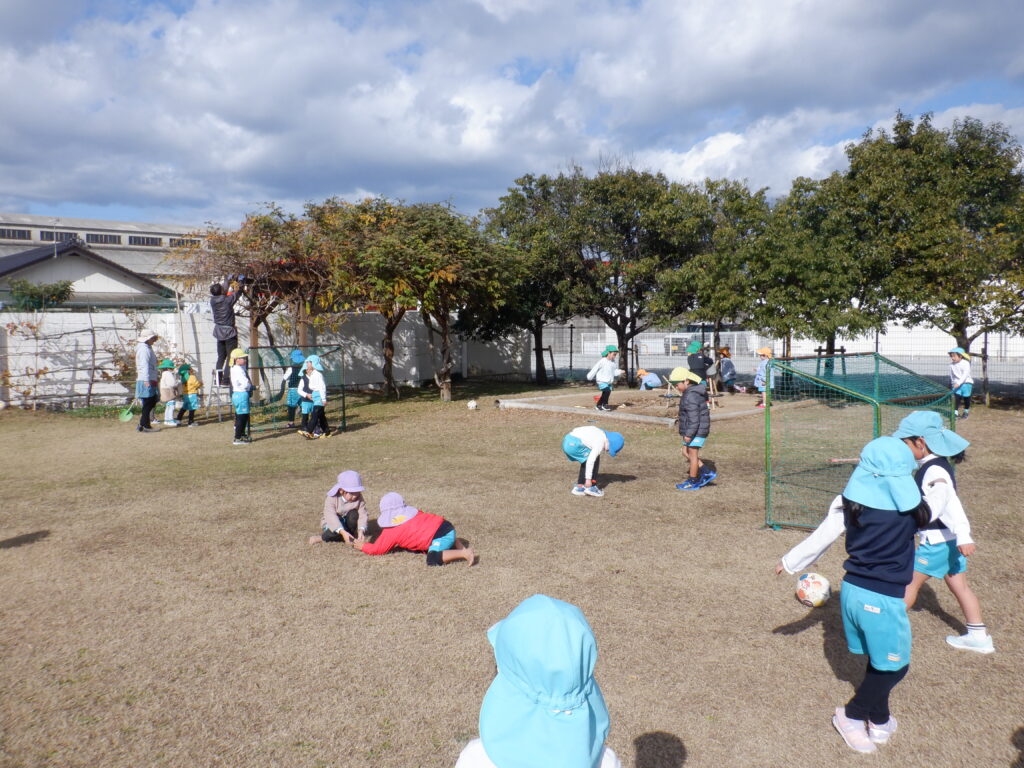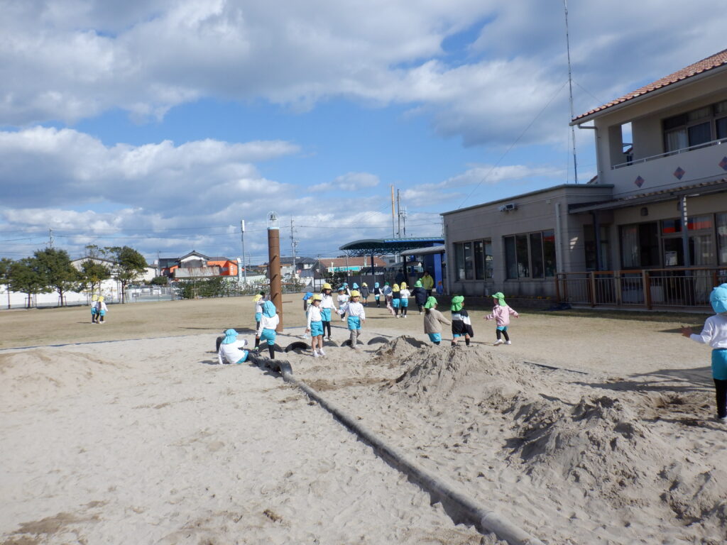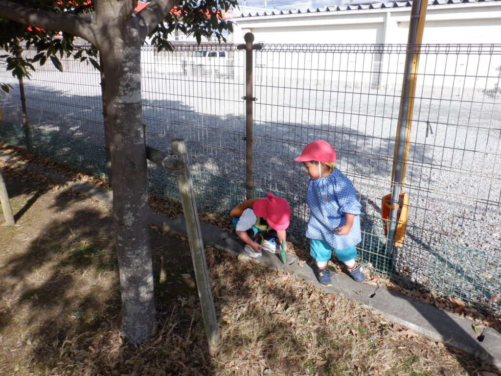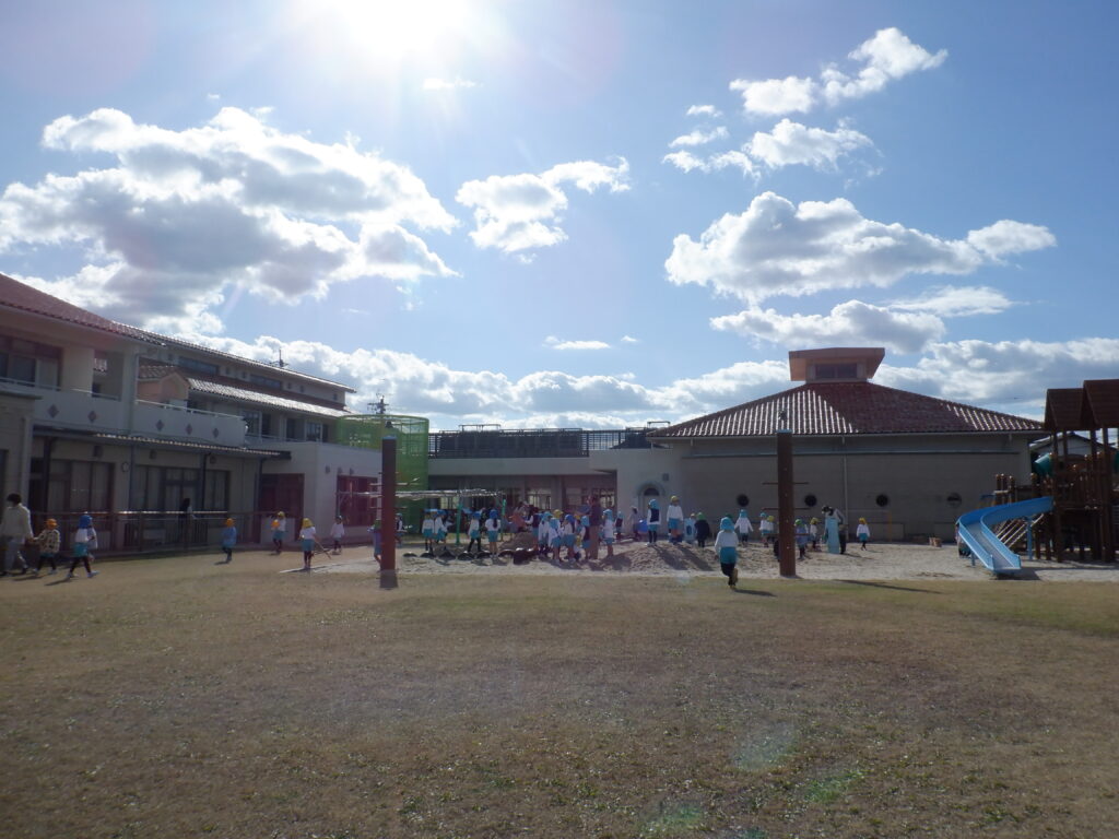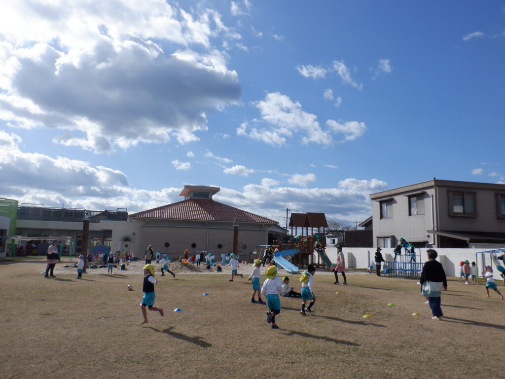 アート展が終わり、それぞれの部屋もいつもの雰囲気になりました。 最初に園庭に飛び出してきたのは、満3歳クラスの子ども達です。 残り少なくなったどんぐりを、しっかり見つけます。 砂場も遊具も広々と使えます。 しばらくすると、次々とたくさんのクラスが出てきました。 今日みたいに天気がいいと、サッカーや鬼ごっこが人気です。 この季節は、貴重な青空です。 木の芽もすでに、春の準備が始まっています。 インフルエンザも流行っていますが、無理をせず元気いっぱい遊ぼうね!