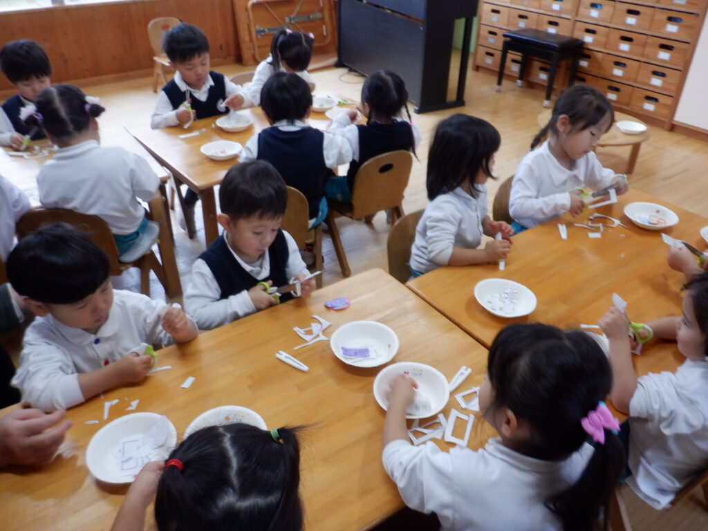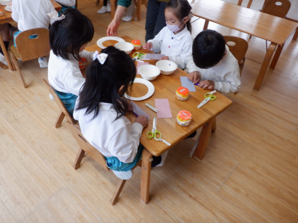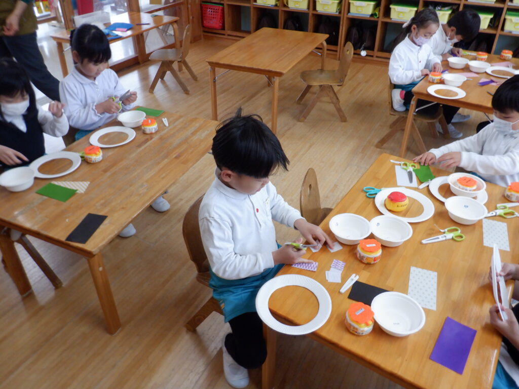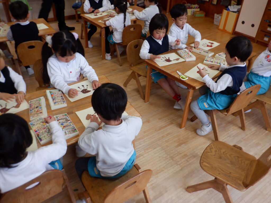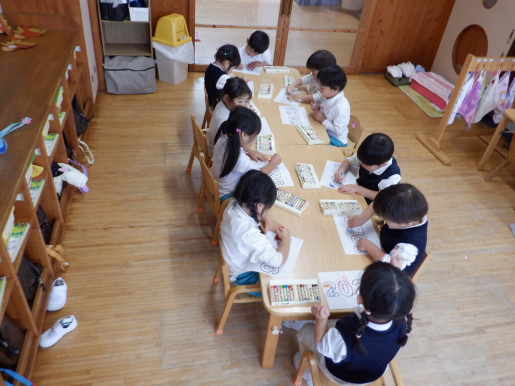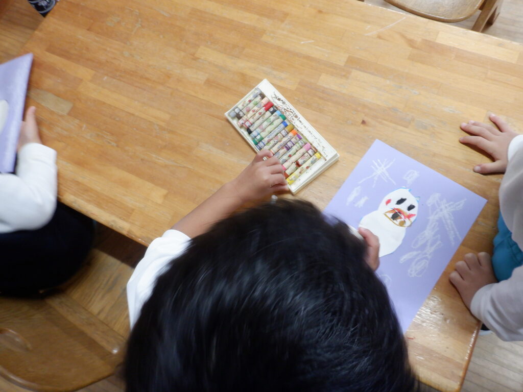 年中クラスも、クレヨンんで思い思いに絵を描きます。