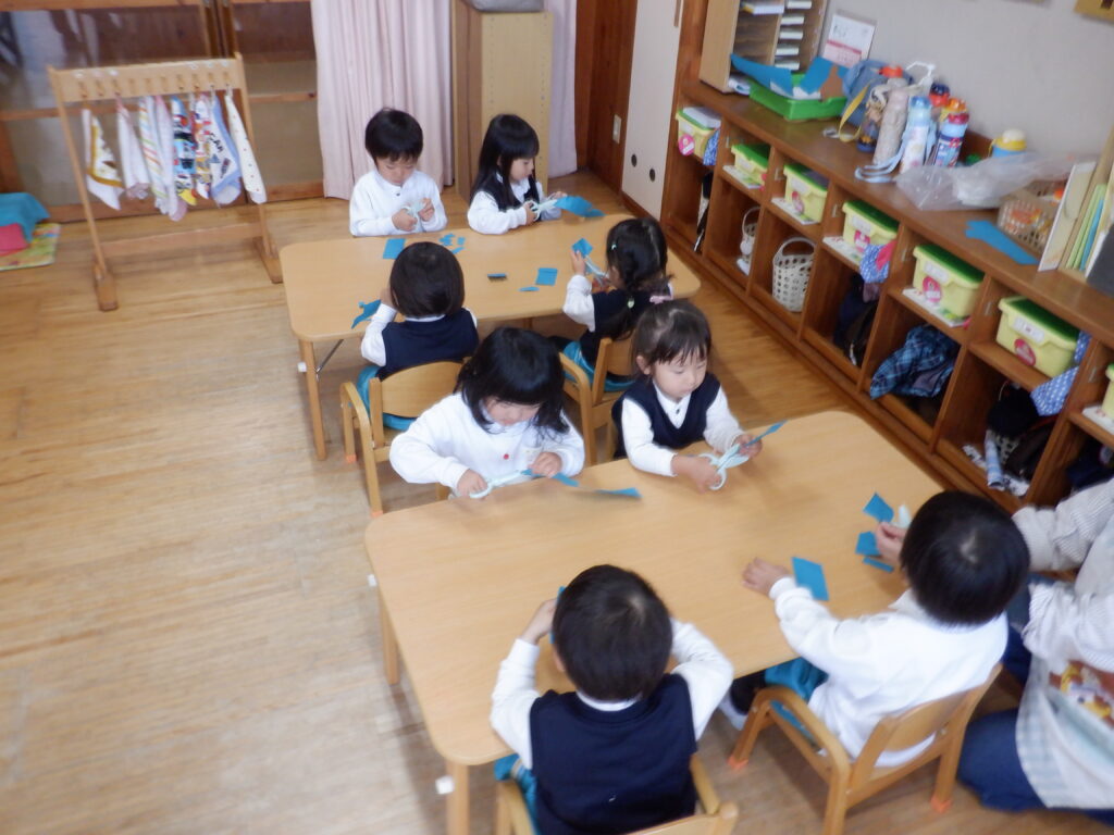 満3歳クラスも、クレヨンでお絵かきを楽しみます。