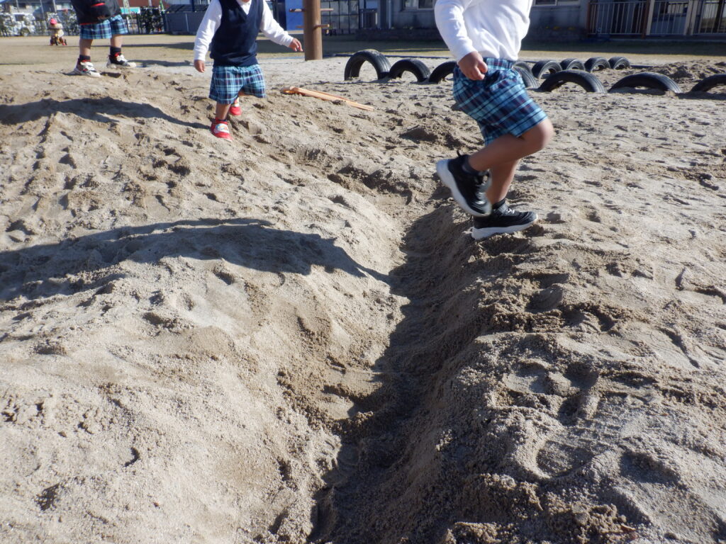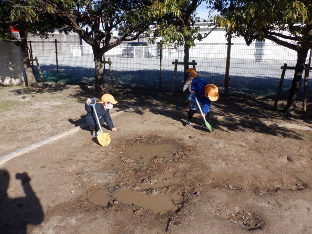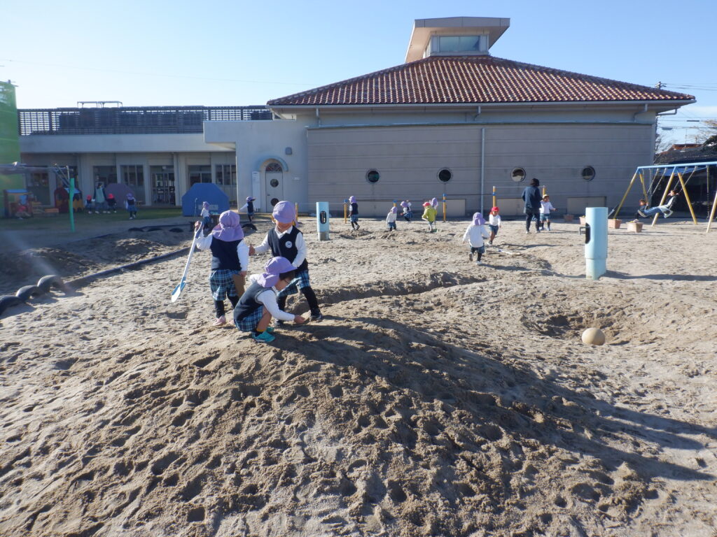 「う~ん、ここは固い。」と言いながらも、一生懸命掘り進める子ども達です。