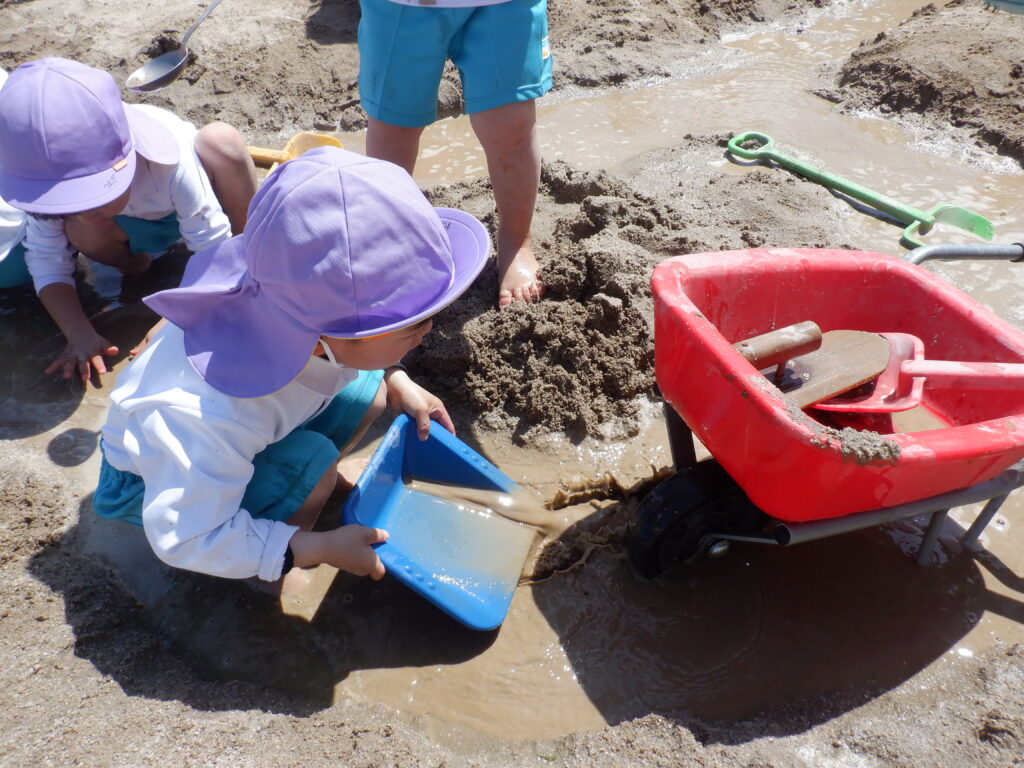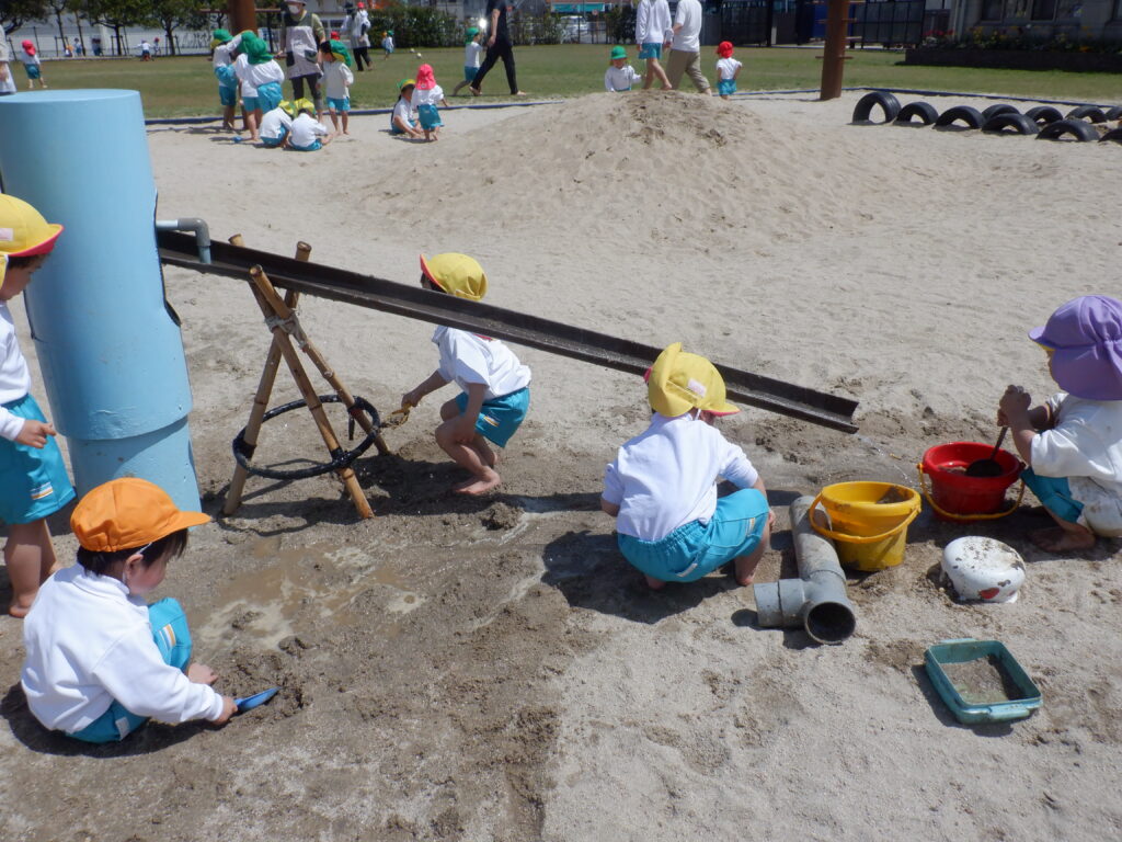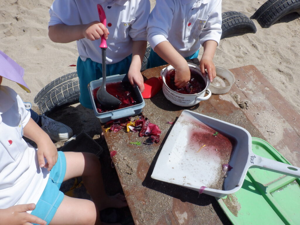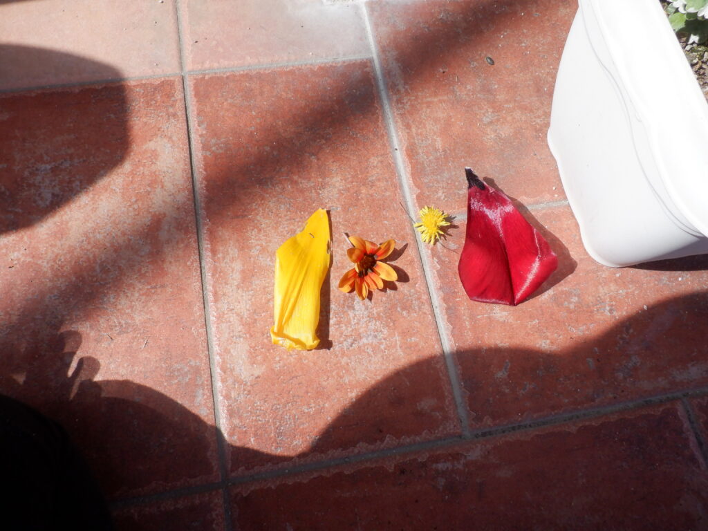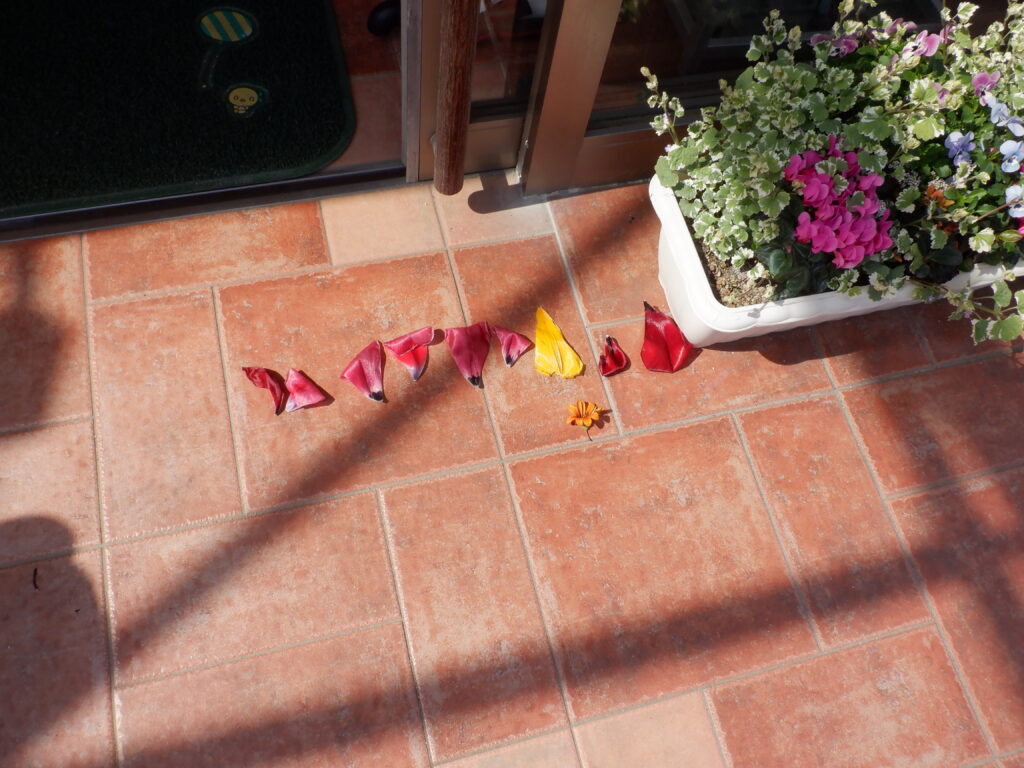 声に誘われて行ってみると、きれいな花や花びらが並んでいました。