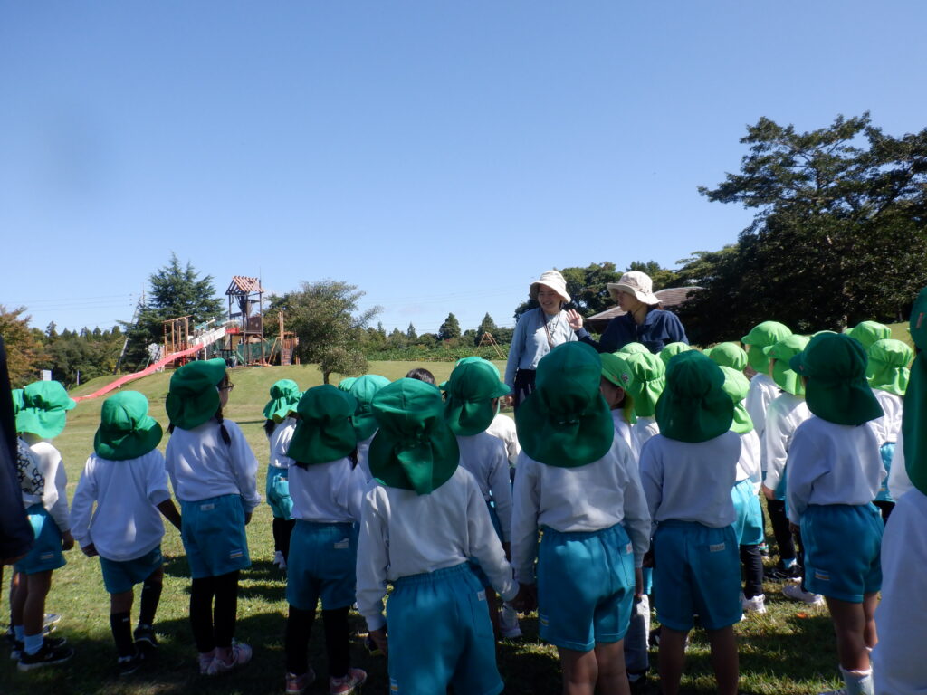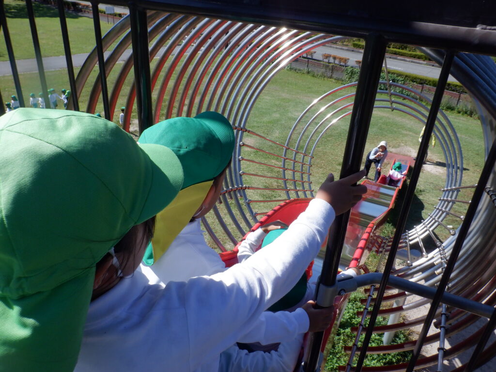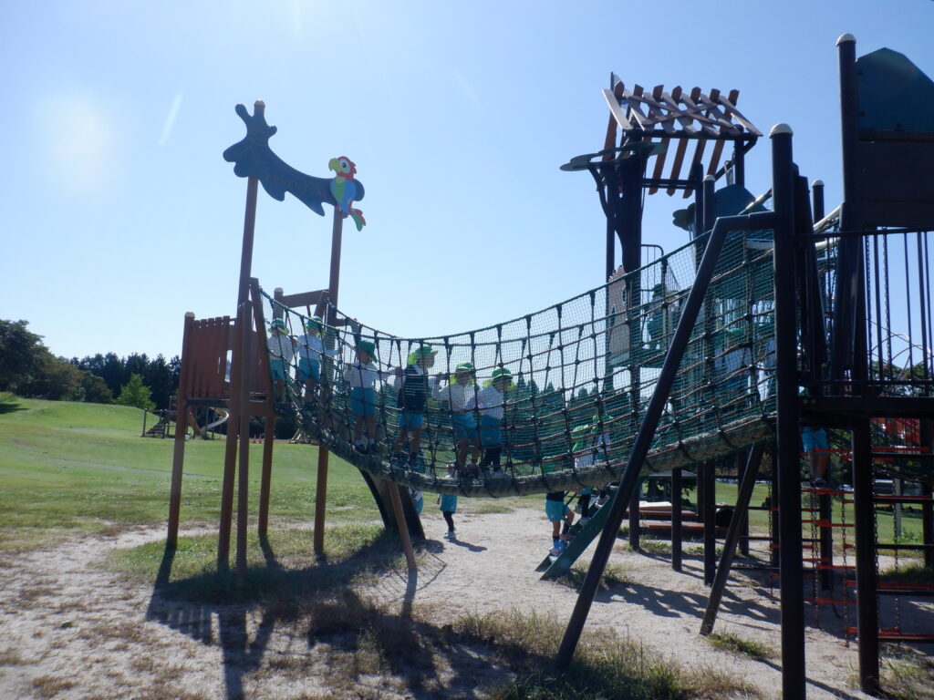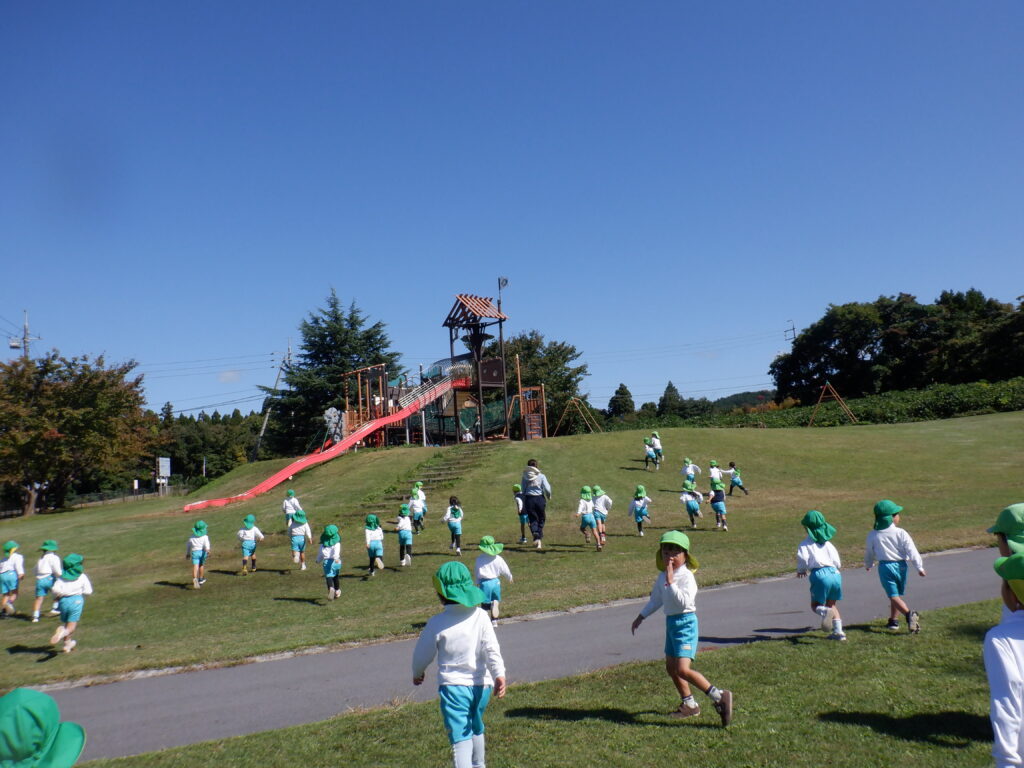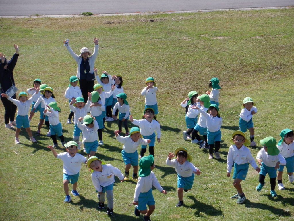 こんな日は、園外保育が似合います。 バスに乗って「レッツゴー!」 大山に向かって、進んで行きます。 READY GO! 幼稚園とは違う遊具で、みんな大はしゃぎ。 せまい所も 地面が見えても ゆらゆら揺れても どんどん進んで行きます。 最後は、迫力満点のすべり台。 みんな「ナイス着地!」です。 いっぱい遊んで、最高の一日でした。 クスノキの実も、たくさん落ちていました。 おいしいお弁当を食べて、 大満足の一日でした。