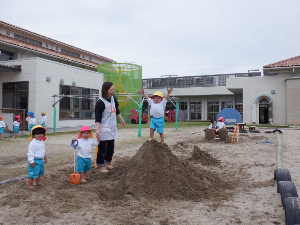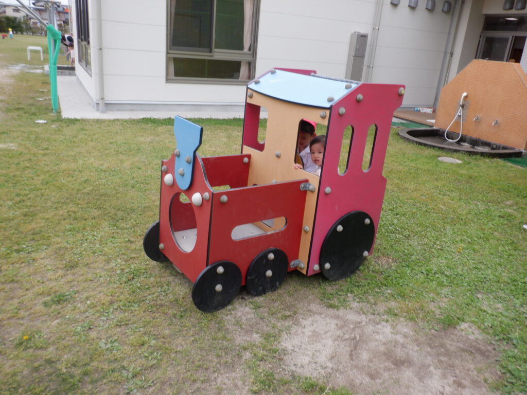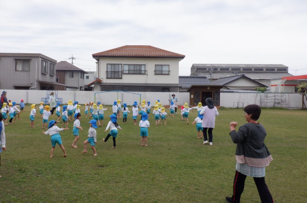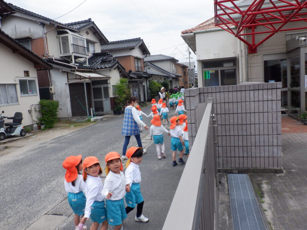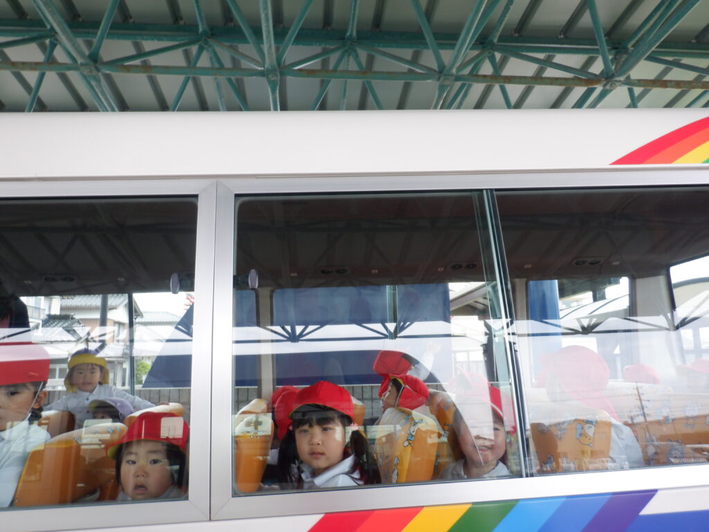朝のスタートは、ミッキー体操で始まります。 端午の節句も、近づいてきました。 こいのぼりは、やっぱり子ども達に大人気です。 さほど気温も上がらず、しっかり遊べました。 年中クラスは、みんなで散歩に出かけました。 年少クラスは、バスに乗ってドライブに出発です。 こいのぼりや飛行機・船を見て、楽しい時間でした。 今年も年長クラスの、Englishの時間が始まりました。 体を動かしたり… 絵や絵本を見たり… 楽しく英語に慣れ親しんだ、あっという間のEnglishの時間でした。