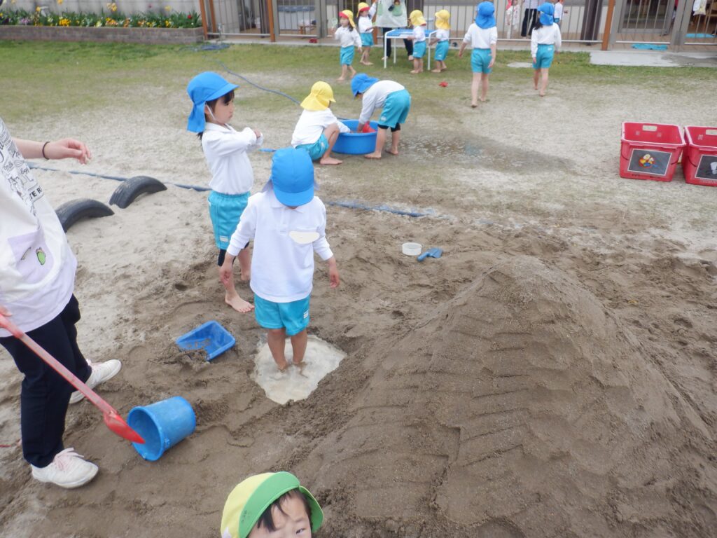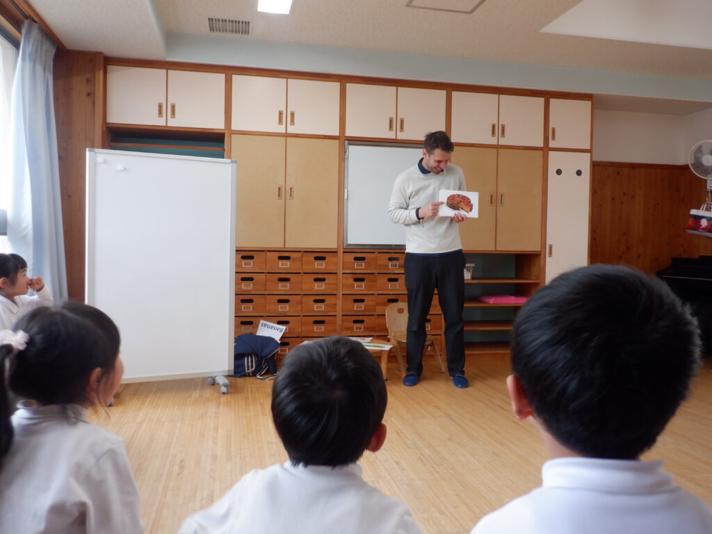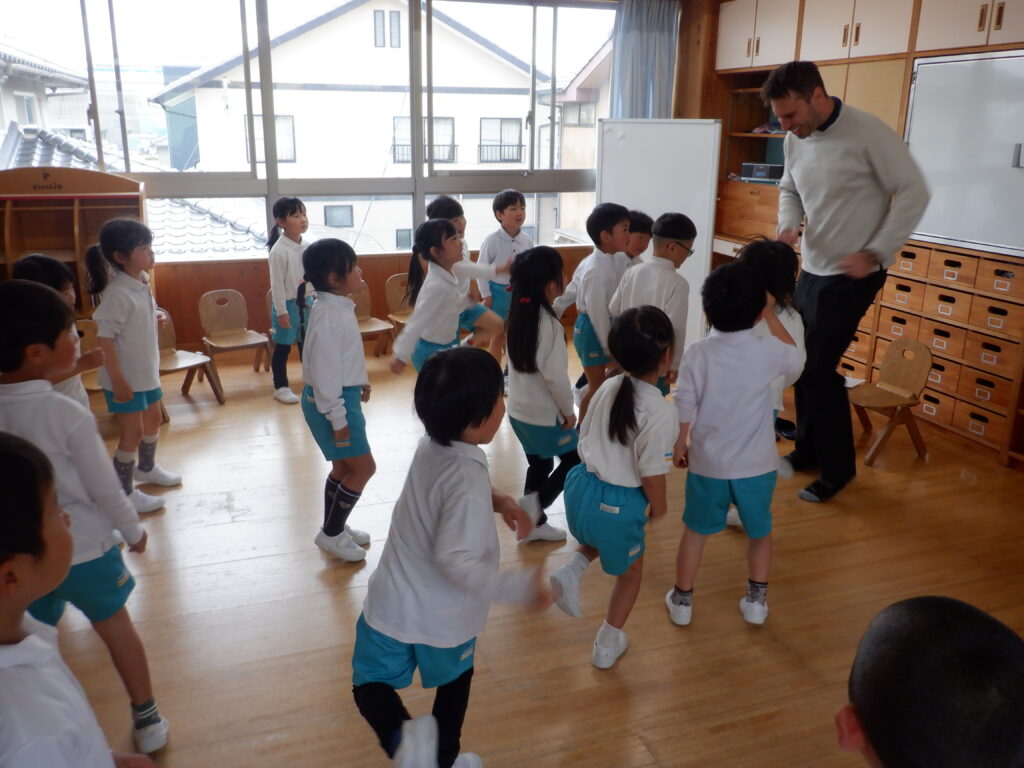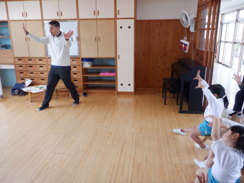 朝のスタートは、ミッキー体操で始まります。 端午の節句も、近づいてきました。 こいのぼりは、やっぱり子ども達に大人気です。 さほど気温も上がらず、しっかり遊べました。 年中クラスは、みんなで散歩に出かけました。 年少クラスは、バスに乗ってドライブに出発です。 こいのぼりや飛行機・船を見て、楽しい時間でした。 今年も年長クラスの、Englishの時間が始まりました。 体を動かしたり… 絵や絵本を見たり… 楽しく英語に慣れ親しんだ、あっという間のEnglishの時間でした。