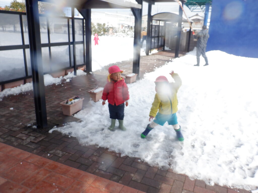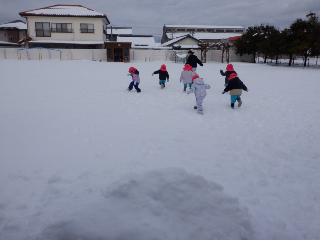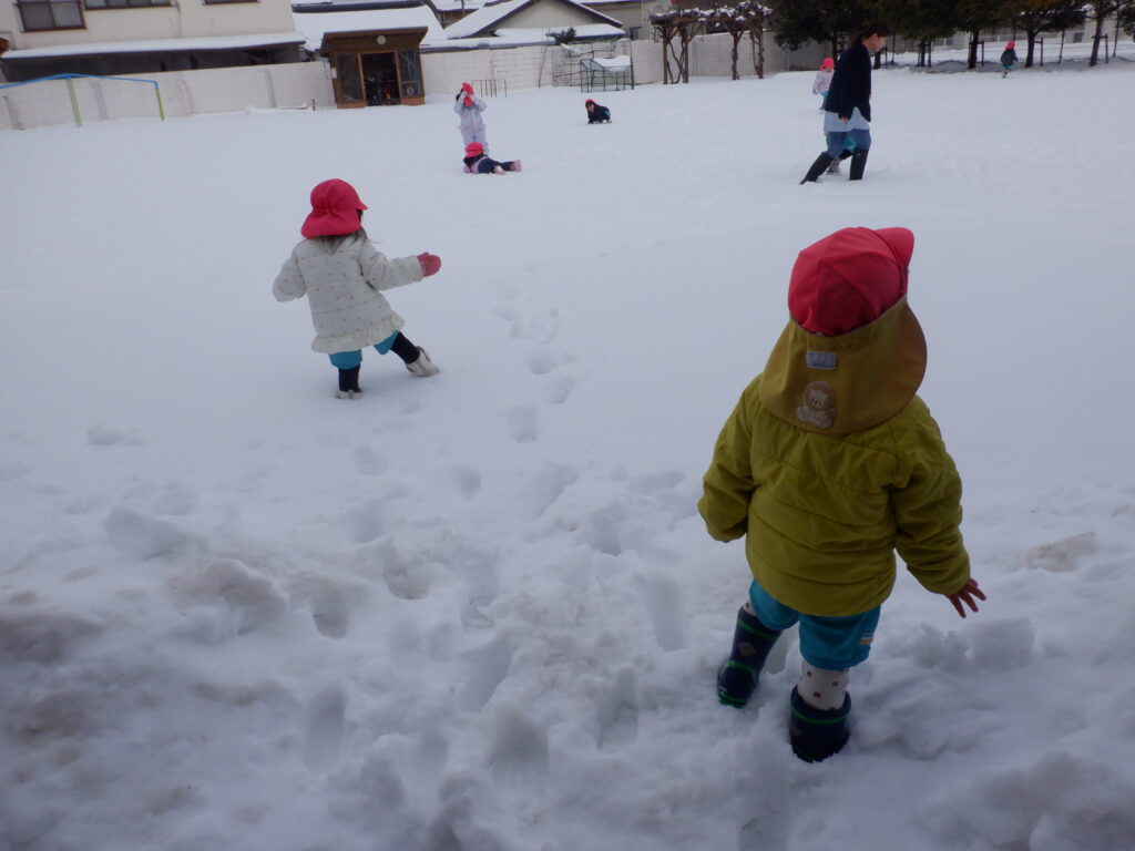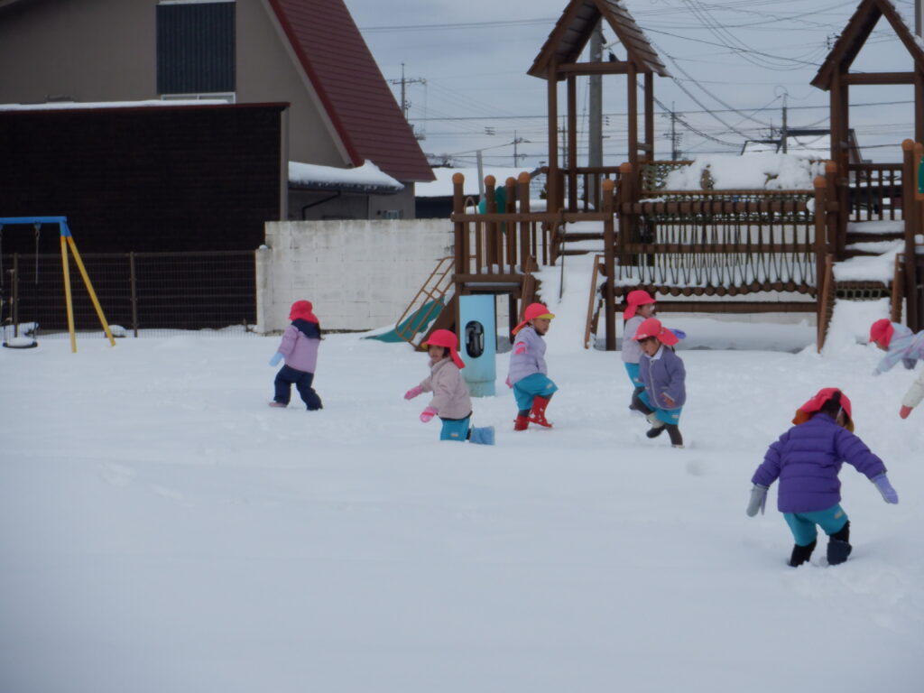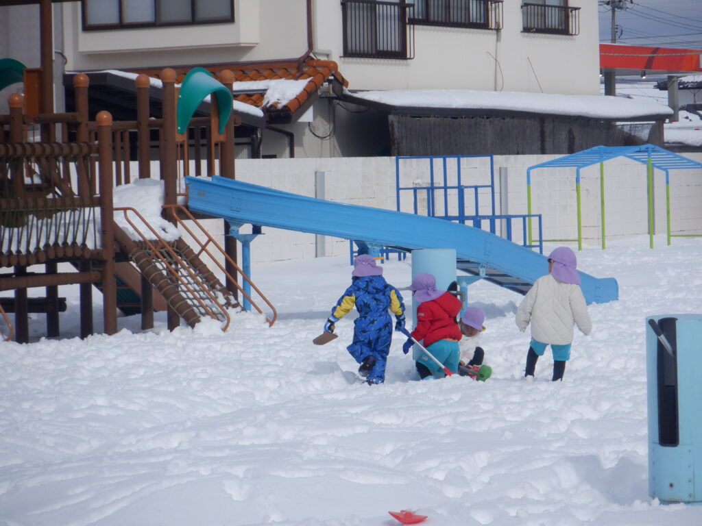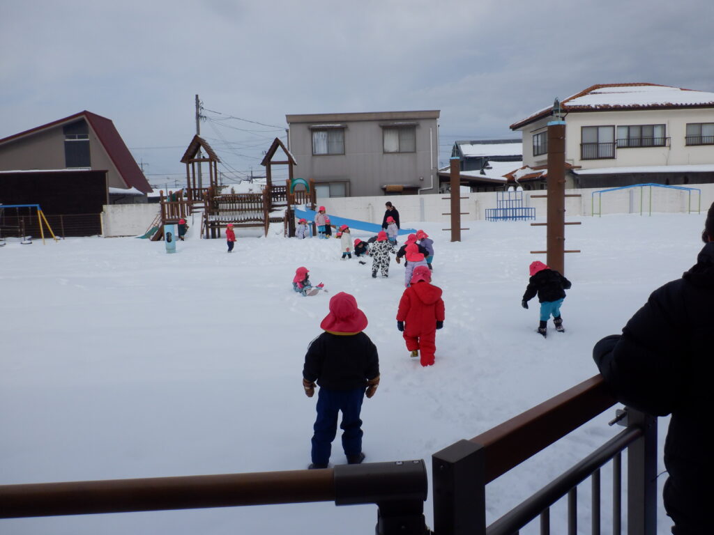 たくさんの子ども達が、雪遊びに出てきました。