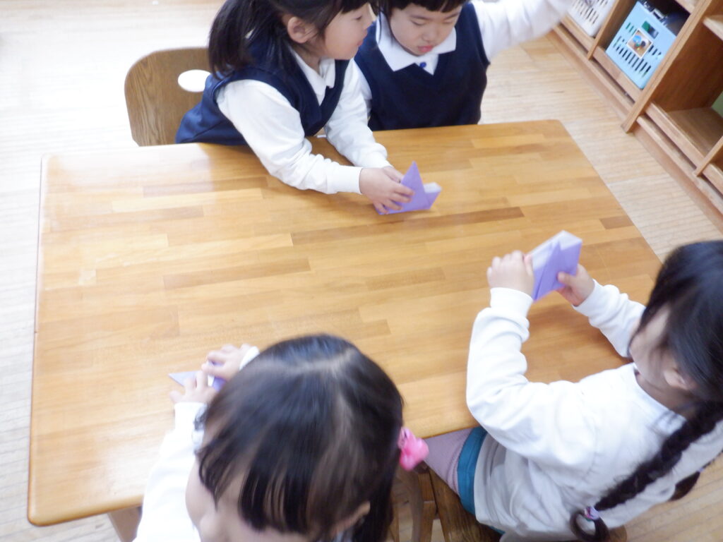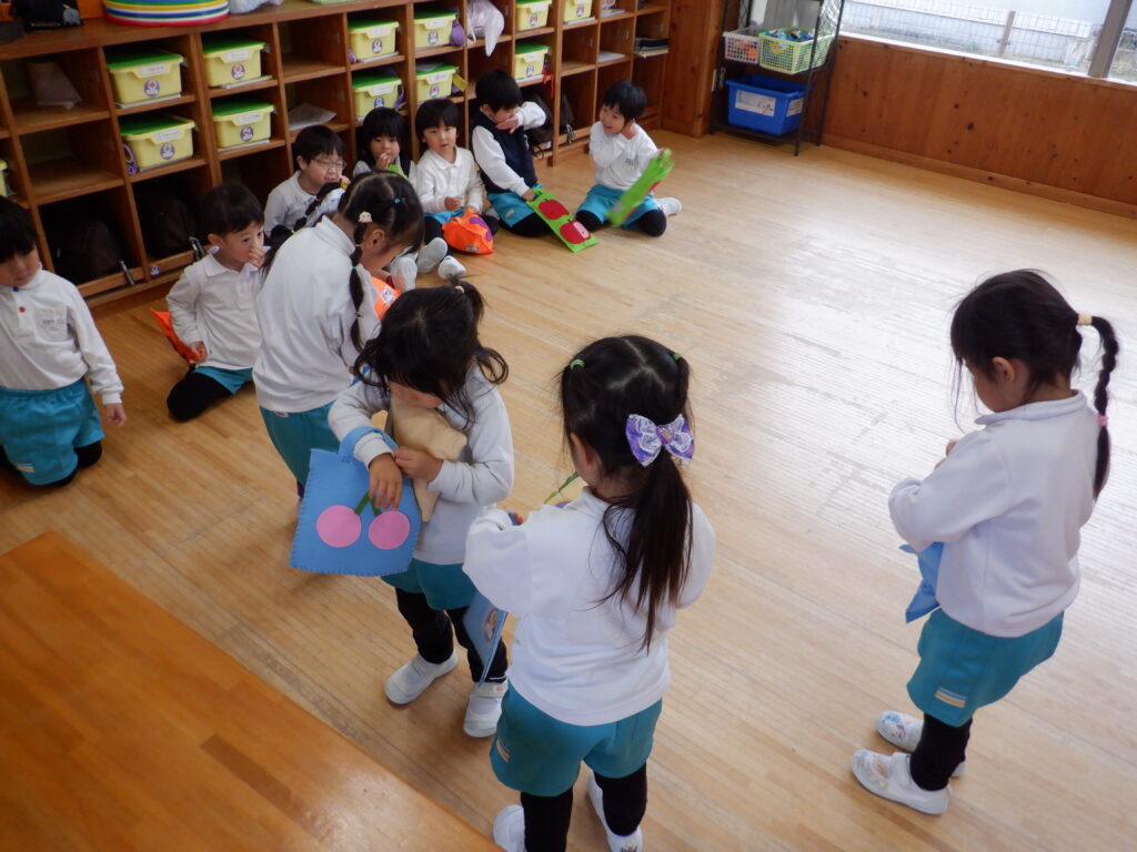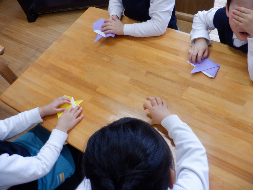 あっという間に、1月も最終日。 おにのグッズを作って、2月になるのを楽しみに待ちます。 おにが出てくる絵本も、興味津々です。 折り紙も、上手になりました。 ゲームを通して、素早い動きの練習です。 「あれっ?どうなっているかなあ?」 だんだん上手になってきます。 今日は、弓ヶ浜小学校の一日体験入学。 小学校に向けての準備が、着々と進んでいます。