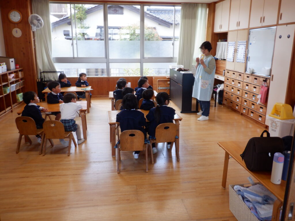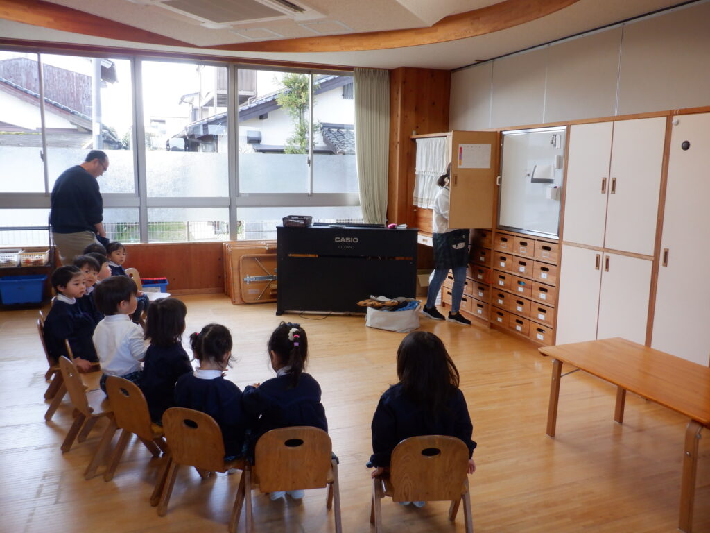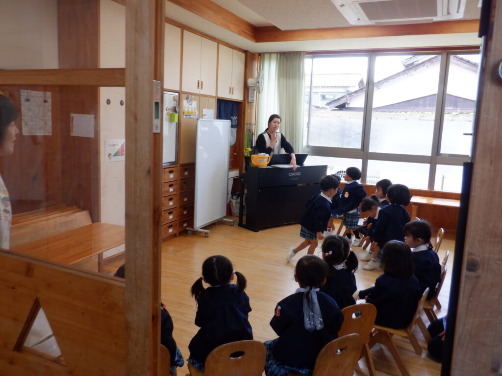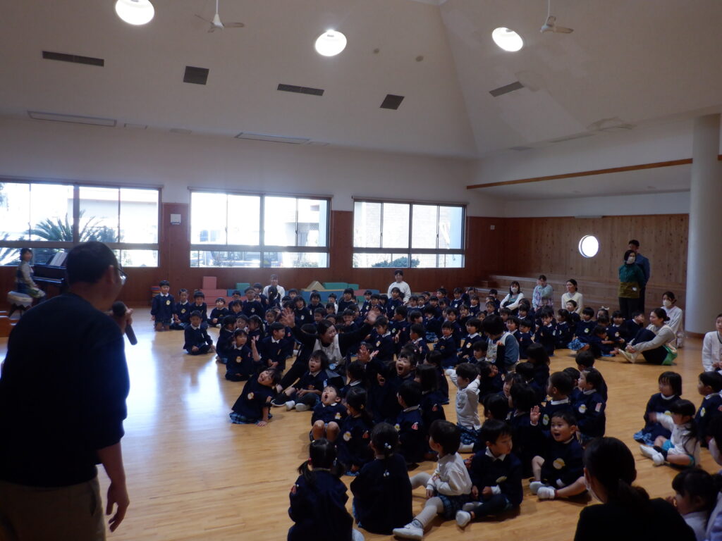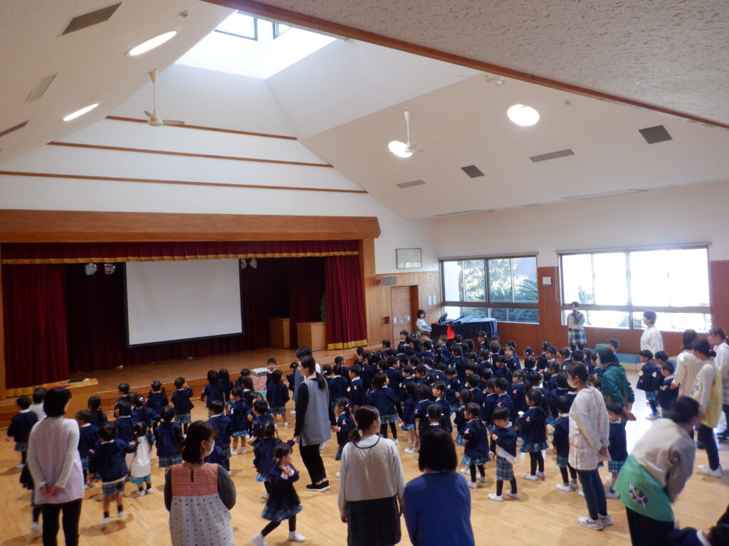 満開のチューリップが、新学期の子ども達を迎えます。 新しい靴置き場を見つけて、新しい部屋に向かいます。 みんな、久しぶりの再会です。 新しい先生と、ワクワクドキドキの朝の会です。 年少クラスは、新しい友達もたくさん入園してきます。 みんなの笑顔が、あふれます。 久し振りにみんなで集まって、始業式。 元気いっぱいのあいさつが、遊戯室いっぱいに広がります。 園歌の歌声も、響きます。 元気いっぱい、園庭で遊ぶ子ども達。 いよいよ明日は入園式。 入園予定のみなさん、待ってます。